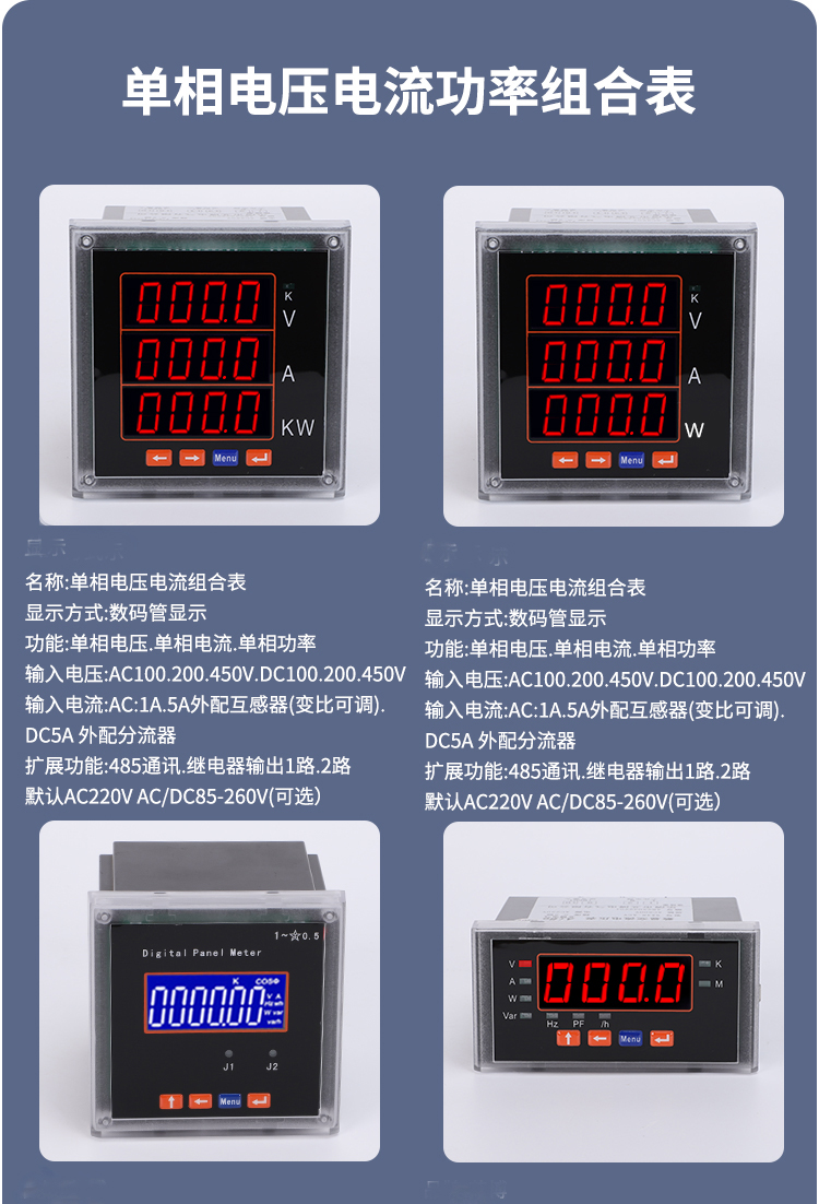 智能數(shù)顯單相電壓電流功率(頻率)組合表UIP-9K4 3K4 AK4